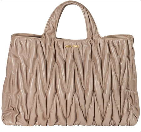 9月7日訊,沙皮狗,你愛嗎?如果答案是肯定的,那么就像懷抱一只沙皮狗狗一樣擁抱一只miu miu 2011秋冬的包包吧!這一季的新款有半數(shù)都由褶皺的元素構成,或光面或翻毛的皮質(zhì)都無比嫩滑柔軟,溫暖的質(zhì)感和色彩,絕對不會不會讓你在秋冬季節(jié)感到寒冷。一個人的時候能把自己的包包當作寵物該有多完美,趕快認領一只回家吧。