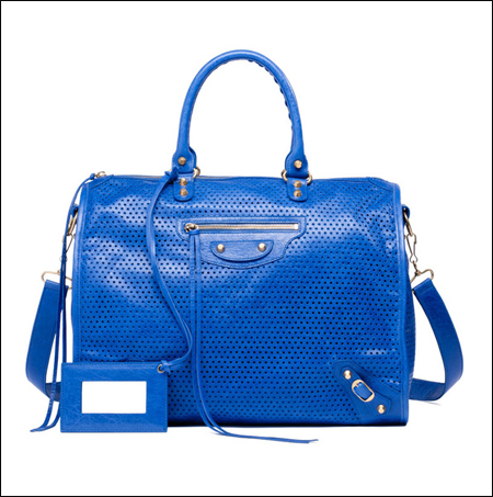 9月16日訊,Balanciaga的2011-12秋冬手袋系列將經典大熱的機車手袋改良創新。各種尺寸、幾何造型的機車包融合了亮麗的用色讓女人們再次為之癡迷。亮麗的寶藍色、蘋果綠色款的手袋充分展現了清新的特質,淺藍色系的兩款手袋充滿懷舊的氣息,毛氈灰色、黑白色細格紋手袋極具英倫風情。用一款適合自己的手袋,讓秋冬更加生動!