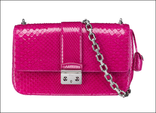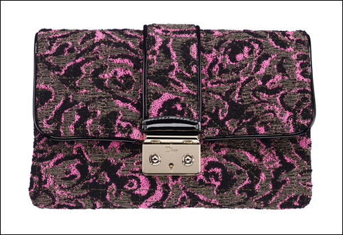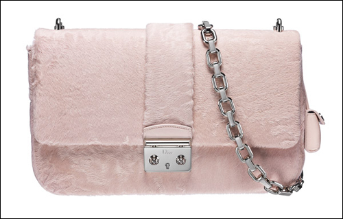 Dior 2011秋冬Miss Dior手袋既有高調奢華的稀有皮革,也有低調優雅的霧面小羊皮,以及提花織物版本,還有一款粉色的皮草手袋,絕對令人愛不釋手。