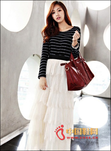 氣質不凡的類似長裙登場!層次感蛋糕裙的設計很有宮廷范兒。具有女人味的同時也很休閑,上衣簡單的搭配一款休閑印花T恤一起穿也很有休閑味道。