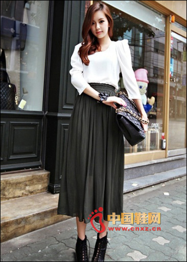 不一定要厚重,秋冬也可以很飄逸很優雅。高腰長款雪紡裙一直在流行。腰間皺著有微微花邊的感覺,冬天的時候搭配打底褲,外面套個有氣場的大衣,絕美!