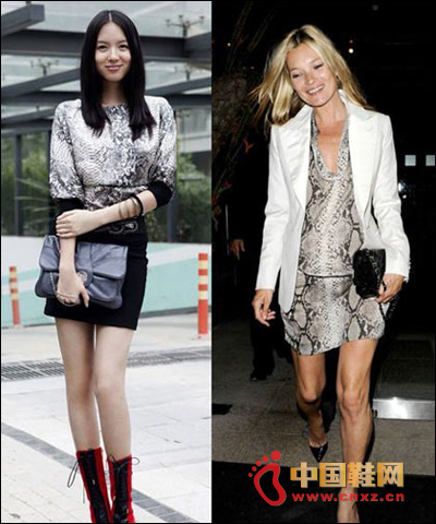 設(shè)計(jì)師們將冷艷、野性、魅惑的蟒蛇紋制成連衣裙、襯衫、印花褲或是包包鞋子,為女士們帶來十足氣場(chǎng)。在過去的幾季,相比豹紋,很多人多少對(duì)于蛇紋心有余悸覺得難以駕馭,但當(dāng)獲悉本季的蛇紋面料大多都只是“印刷品”后,便欣然加入“馴蛇”大軍。國內(nèi)女星張梓琳放棄一貫的優(yōu)雅也穿上了蛇紋上衣顯得霸氣十足。而女王Kate Moss的配搭更是不輕浮不做作,展現(xiàn)出渾然天成的性感魅力。想嘗試和他們一樣,那就準(zhǔn)備起一些蛇紋品,這個(gè)秋冬做自己的造型魔術(shù)師吧!