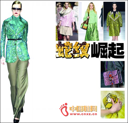 或許是見到了蛇紋也能百變的效益,或許是喜新厭舊的設計師們已經玩膩了每個秋冬必要出現的豹紋,到了 2011 年秋冬,蛇紋終于變成了熱門。以奢侈、華麗為關鍵詞的Gucci就將彩色蛇紋的浪潮推到了制高點,原本規矩的青藍色長西裝和亮黃、紫紅色的Tote bag在有蛇皮紋路坐鎮的“背景色”下真是“霸氣外露”,一兩件單品立刻點睛全身行頭。至于再度熱捧蛇紋的Prada,則將蛇紋鋪滿上世紀60 年代復古風格的繭式大衣,乍一看很夸張,但又有幾分文藝女青年的古怪氣質,再加上鞋子與襪子精心巧思的視錯設計,足以挽救你淪落成讓人一眼看穿的“暴發戶”。