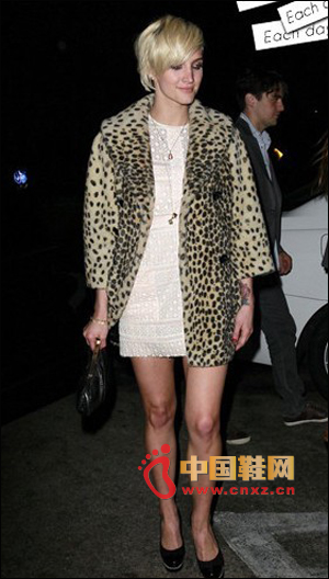 性感豹紋連衣裙,豹紋運用在裙裝上有著野性的性感,流露著獨立的魅力,搭配小西裝和黑色踝靴,有著女強人的范兒。