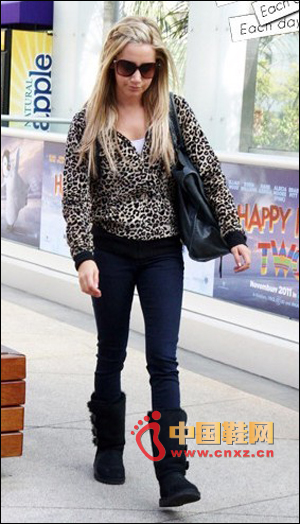 休閑款的衛衣開衫,低調色彩的豹紋適合舒適的休閑裝,搭配小腳褲和雪地靴,舒適、顯瘦還保暖。