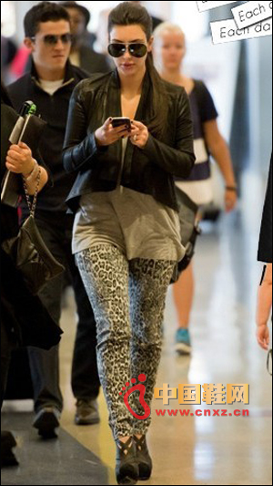 豹紋小腳褲,搭配寬松T、皮衣、高跟短靴,個性十足,豹紋與皮質相遇HOLD住整個氣場。