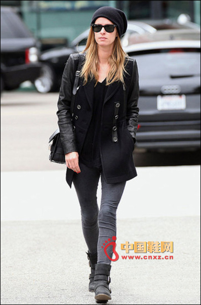 Nicky Hilton的造型實在有夠百變。前一秒還能在紅毯上穿著碎花長裙妖嬈出鏡,這一秒就變成“女殺手”形象,黑色針織帽,黑色皮衣再搭配一雙機車短靴,實在太酷!