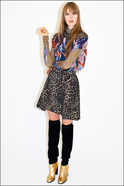 11月10日訊,青春活力的少女氣質(zhì)一直是MW Matthew Williamson留給人的好印象。以絢麗的色彩打造的2011秋冬女裝系列,更是在這份活力中添加了幾分個(gè)性。不過膝蓋的連衣裙裝飾上彩色的大花朵和彩色的豹紋都充分展現(xiàn)少女生氣盎然的自信與激情。