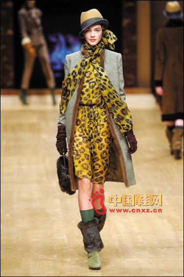 獸紋作為連衣裙出現(xiàn),搭配平實大衣,時髦度直線上升