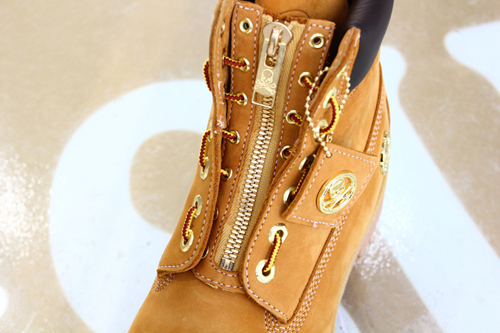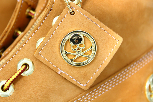 屬于初次合作的mastermind JAPAN及Timberland,挑選主打classic的6" Boot可謂是最妥當的選擇,并沿用了Timberland最為眼熟能詳的tan tone,可知道Timberland 6" Boot更是90年代中最為人氣的Hip Hop裝備之一,參與這次破天荒聯名的資格也絕對毋庸置疑。較為特別的是,為了加強聯名的識別度,這回的6" Boot在鞋舌上加入了骷髏拉鏈細節,對閣下來說這樣的細節可能已是司空見慣之事,但對于素來不太強調拉鏈設計的Timberland來說就變成了一大突破。鞋跟分別貼上兩者的金屬制Logo之余,細致得甚至連作為附件配送的掛牌也分別貼上了同樣的金屬元素,然而拉開拉鏈也可看見雙方的超大Logo印章,整雙靴子的聯名標識細節可謂隨處可見,正好貼合mastermind JAPAN一向強調Logo元素的設計作風。還有三個季度便到達盡頭的mastermind JAPAN,與Timberland的首度合作企劃也大有可能成為“最后派對”,更使這雙聯手炮制的6" Boot饒富收藏價值。