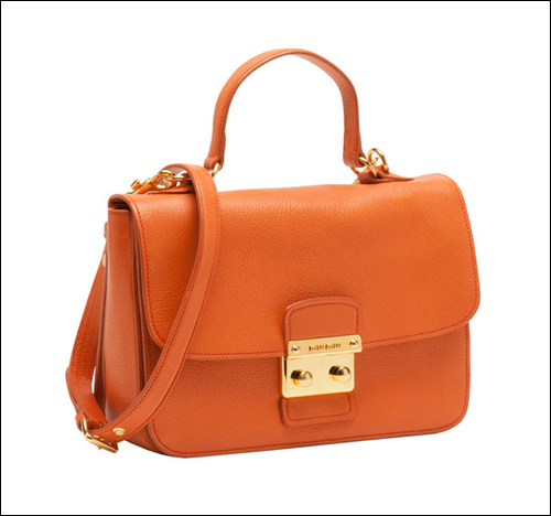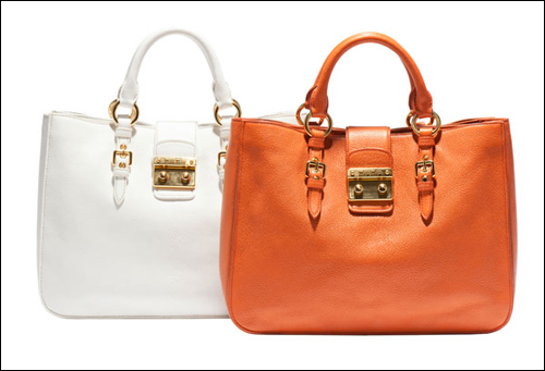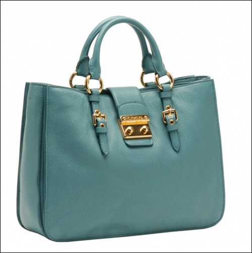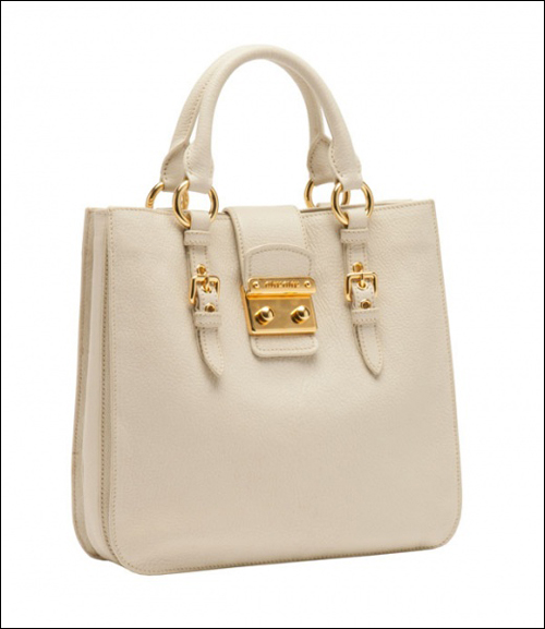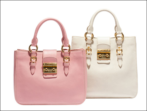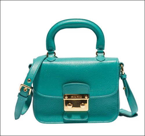 2011秋冬Miu Miu Madras手袋有六種不同款式,每種款式都配有可調節肩帶,可選顏色為亮色系,包括綠松石色,木瓜色、嫩粉色、白色和淡藍色。出自miu miu牌下的手袋都不顯老氣,反而映襯出一種嬌嗲奇質。而Miu Miu Madras這一系列手袋最為顯著的特色是運用了與眾不同的雙紐扣搭扣設計,優雅的皮革以獨特的工藝進行加工,從而不僅增加了手袋的耐用性,還使手袋的手感特別柔軟舒適,難怪討得眾年輕MM的喜歡。