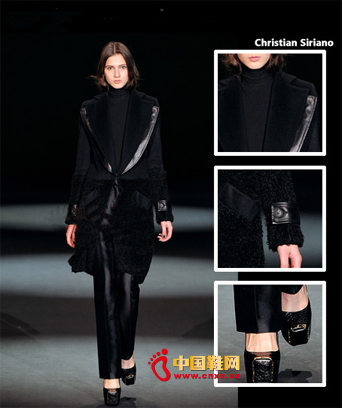 不仔細看,你還真看不出來Barbara Bui這件是拼皮。喜歡帶點皮草的你,皮革與皮草混搭的大衣不錯。這種漆皮質感的大衣,摩登且超未來感,加上皮草翻領,透著股小奢華。