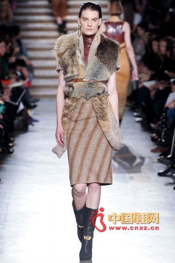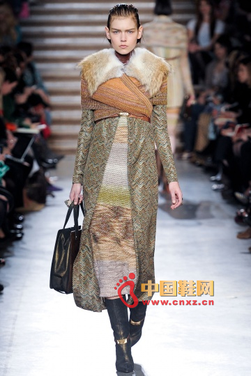3月1日訊,在意大利眾多時裝品牌中missoni已然被公認為針織品的掌門人。在2012秋冬米蘭時裝周上,米索尼式的色彩和幾何抽象紋樣再一次出現(xiàn)在秀場上,色彩+條紋+針織+皮草的品牌特色如同萬花筒般的出現(xiàn)在模特身上,沒有重復(fù)只有風(fēng)格:條形花紋、鋸齒紋樣、肌理凹凸提花馬賽克圖案……這倒是讓人想起了夏乃爾的那句名言:時尚變遷,風(fēng)格永存。