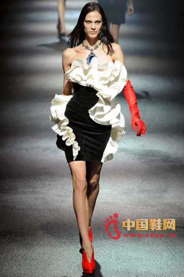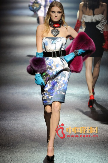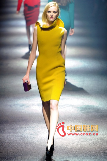 2012秋冬,Lanvin將最優雅的50年代廓形重新演繹,標志性的浪漫大波浪和打褶處理再加上高純度的亮色,美得讓人想尖叫。皮草小披肩和巴洛克式的珠寶配飾更是畫龍點睛,讓穿Lanvin的女人有著難以抗拒的魅力:她們優雅、獨立、堅韌,有著美麗的外表和強大的精神力。