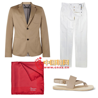 駝色西裝和白色休閑褲是男士衣櫥中出鏡率較高的色調單品,優雅兼紳士的儒雅風格,是沉穩男士偏愛的搭配效果,但過于素凈的色彩略顯單調,選一款純色絲巾搭配,便可打破這種沉悶感,并為男士增添一絲神秘氣質。