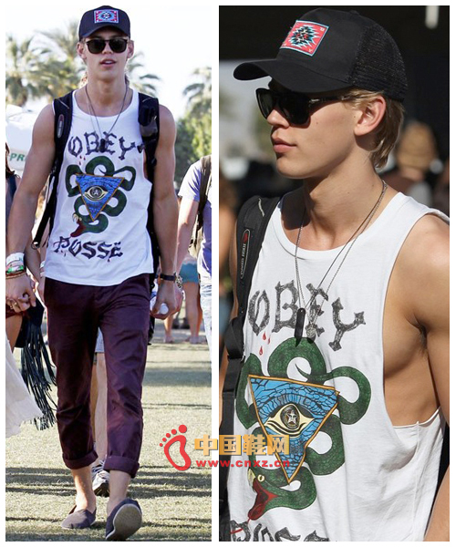 5月2日訊,美國青年演員兼歌手Austin Butler攜女友也出現在了加利福尼亞的Coachella 2012音樂節上。當天他頭戴美國著名街頭Obey 2011春夏季復古卡車帽,穿著同樣是Obay的背心,腳上則是一雙來自TOMS的,戴著Persol太陽鏡的Austin Butler帥勁十足。
