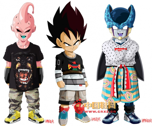 中國鞋網5月30日訊,穿AJ、Jeremy Scott、Air Yeezy的悟天、特蘭克斯及悟天克斯,兩月前曝光的Human Aliens潮版龍珠角色,相信各位該還是記憶猶新吧,以潮流為切點勾起不少人的童年回憶呢!