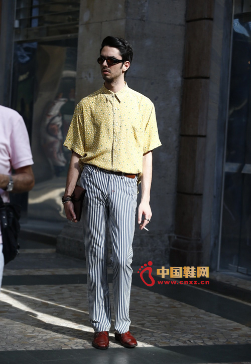 中國鞋網6月28日訊,相比倫敦的天氣,米蘭白天30℃的氣溫已算是溫暖和煦了。眼前來來往往的型男,定會給你的夏季著裝一些啟發。