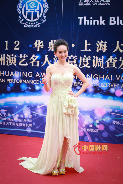中國鞋網(wǎng)7月6日訊,“2012華鼎亞洲演藝名人滿意度調(diào)查”發(fā)布盛典在北京奧體中心舉行,現(xiàn)場星光璀璨,上百位明星亮相紅毯。內(nèi)地青年女星張定涵一襲淺黃色長裙搭配高跟鞋亮相,裙擺曳地優(yōu)雅飄逸。