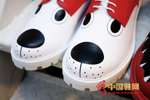 此次的皮鞋共設計兩款,一款是以可愛的狗作為靈感,直接在皮鞋的鞋面上印制有非常卡通的狗樣式的圖案,而另一款則是將動物的牙齒圖形印制在鞋面上,猶如血盆大口一樣。兩款設計都十分逗趣,而這也非常符合兩個品牌本身所傳遞的不同于傳統的理念。