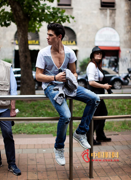 中國鞋網8月28日訊,今天帶來最新一期的歐美型男街拍,在這一輯中我們看到越來越多的時尚男士用運動鞋搭配著裝,即使是All-Pink這樣高亮度的Look搭上一雙運動鞋也顯得和諧無比。今年是倫敦奧運年,一切與運動相關的配飾單品都是潮流之熱,不同的造型配上一雙運動鞋更是不會出錯的選擇。