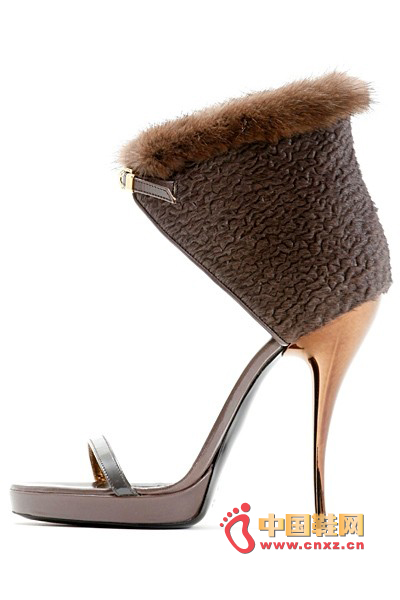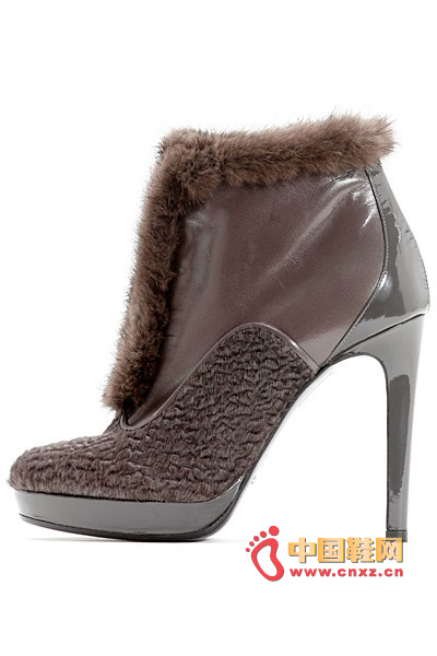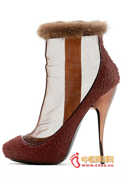 中國鞋網9月17日訊, Viktor & Rolf 2012秋冬系列以光澤感的漆皮和質感的翻毛皮為主要鞋面材質,配合透視效果的輕紗拼接,讓這個系列別具個性。細高跟的設計匹配質感獨特的鞋子完全帶出了女性優雅的氣質。此外,設計師還適當點綴了毛茸茸的皮草,讓鞋款更為俏麗。