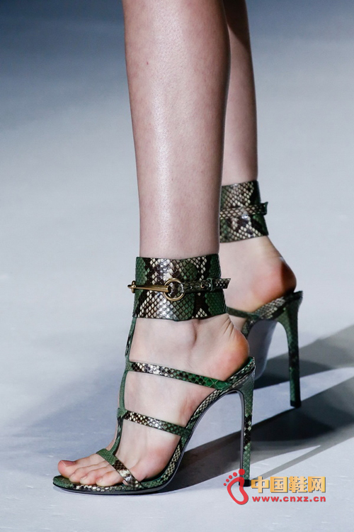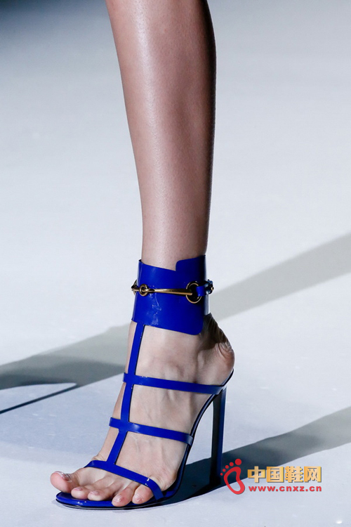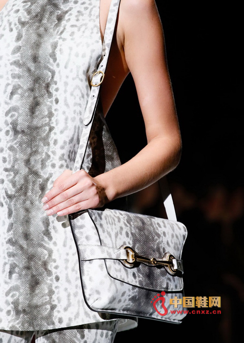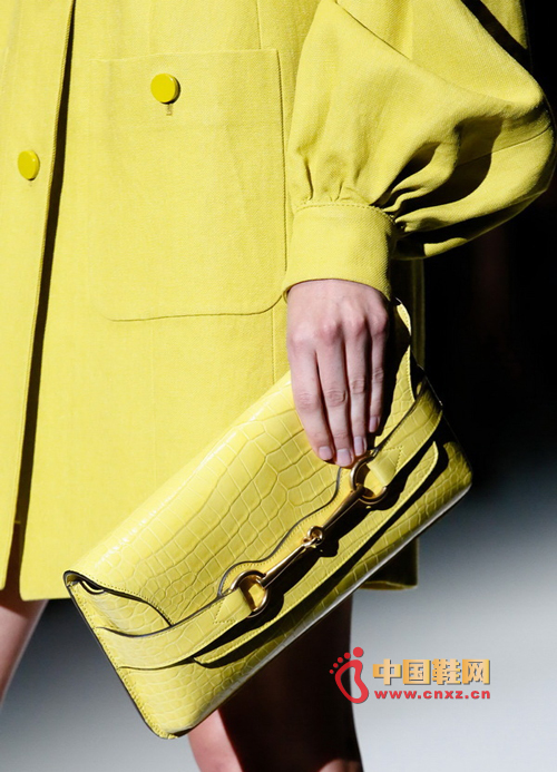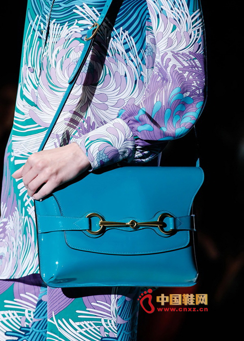 中國(guó)鞋網(wǎng)9月21日訊,本季的GUCCI秀場(chǎng)上仿佛變成了一個(gè)繽紛調(diào)色盤,各種明媚的顏色,GUCCI設(shè)計(jì)師Frida Giannini說“春夏季我愛玩色彩游”。炫藍(lán)色、檸檬黃、亮粉色...服裝亦是如此,乃至手袋、高跟鞋都成為了色彩的俘虜,結(jié)合了漆皮、蛇皮的材質(zhì),高調(diào)又野性。簡(jiǎn)約的設(shè)計(jì),利落的線條,保持著GUCCI一直詮釋性感的方式。