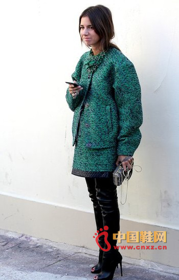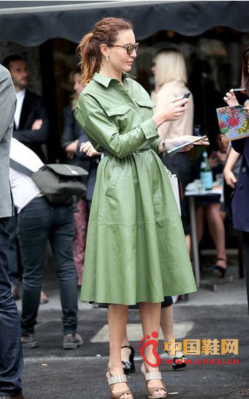 中國鞋網10月29日訊,季節氣候是選擇怎樣穿衣的首要因素,隨著季節褪去了自然華美的外衣,人們也很自然的收起的帶有色彩的服裝,更多的是選擇一些黑灰和深色的衣服來穿。But時尚潮人們的內心永遠是春天,不滿于枯黃的世界,頻繁的選擇綠色的服飾來妝點這個季節,讓這個世界多一份生機。