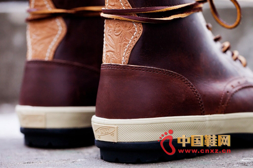 中國鞋網12月1日訊,于2012 Holiday 季度,日裔美籍藝術家 Taka Hayashi 再次與美國滑板品牌 Vans 旗下高端支線 Vans Vault 展開合作,打造全新的 Horween Oxford Toe Cap LX 靴款。當中兩雙靴款皆以迎合季節氛圍的棕色和黑色呈現,采用芝加哥 Horween 上等皮革作為主要材質,輔以復古味滿載的皮質鞋帶、金屬鞋帶扣、以及后跟上的帶有花紋的皮革拉標點綴,此外 Vans 經典中底的搭載更是為該靴款營造混種的氛圍,結合戶外靴款的粗獷與滑板鞋的輕松舒適,整體讓人耳目一新。目前,棕黑二色的 Horween Oxford Toe Cap LX 已經可于 Vans Vault 指定店鋪購得。
