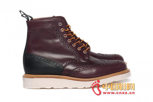 中國鞋網12月14日訊,于 2012 Holiday 季度,美國人氣時尚設計師 Mark McNairy 就為加拿大時尚名所 HAVEN 特別打造了一系列鞋履,包括 Derby Cap Toe Boot,Country Brogue Boot 以及 Army Grain Derby Shoe 三種式樣。其中,Derby Cap Toe Boot 是去年版本的升級款,采用上等黑色麂皮材質打造,以鞋頭和鞋后跟的深藍色皮革材質營造對比感,并搭配上蠟鞋帶;Country Brogue Boot 以高檔皮革構成整體,鞋面的雕花細節流露出濃郁紳士氣息;而 Army Grain Derby Shoe 選用極富質感的顆粒紋皮革材質制作,搭載高機能白色 Vibram Cristy 大底,不同色系的縫邊顯得尤為奪目。目前,該系列鞋款均可經由 HAVEN 購得。