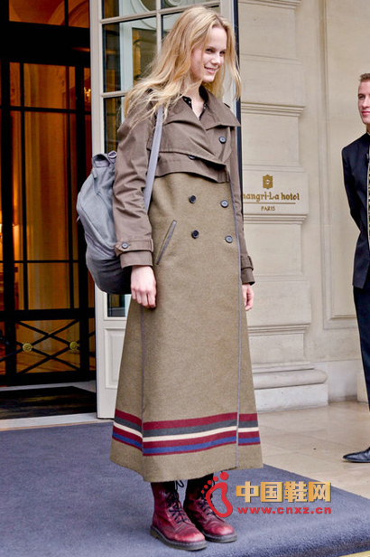 中國鞋網12月18日訊, 大衣中的軍裝風格一直都是潮人的最愛,軍綠色或深色的軍裝外套,大氣中不失霸氣,風度與溫度兼具,讓你在街頭盡顯女王風范兒,下面就來看看時尚潮人們是如何搭配軍裝風大衣的吧。