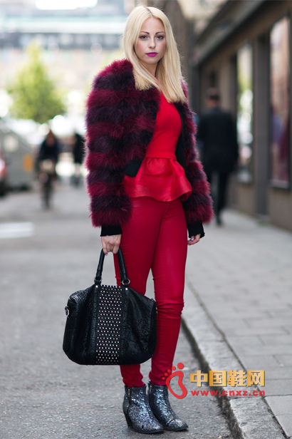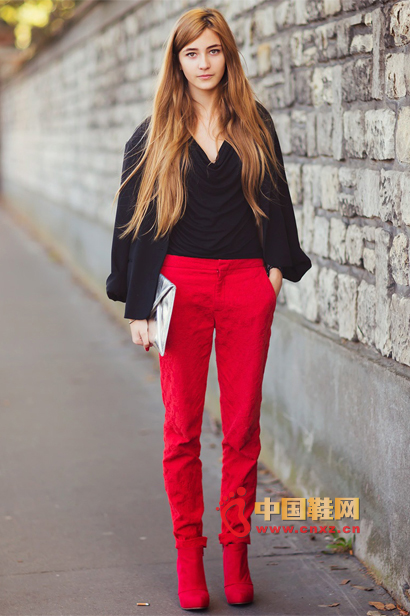 中國鞋網(wǎng)12月26日訊,沉悶黯淡的秋冬街頭,亮麗搶眼的紅色裝扮給人帶來溫暖的感覺。從紅色大衣到紅色連衣裙,從紅色鉛筆褲到紅色針織衫,哪怕只是一雙紅色短靴或者一個(gè)紅色手袋,也都能瞬間點(diǎn)亮你的全身。