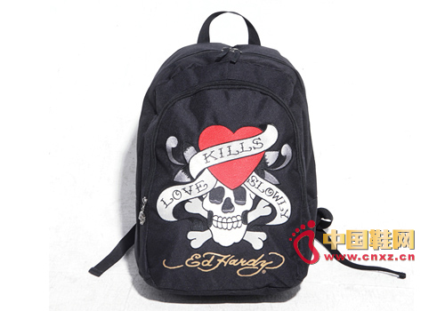中國鞋網(wǎng)1月6日訊,埃德·哈迪 (Ed Hardy) 以設(shè)計(jì)大膽的街頭潮流時(shí)裝聞名.將富有東方色彩的紋身融入到設(shè)計(jì)中,注入復(fù)古朋克元素及街頭文化,重新定義了“街頭時(shí)尚” (Street Fashion),把Ed Hardy 塑造為極具美國精神的品牌。這款新品2013 S/S「復(fù)古LOVE KILLS SLOWLY經(jīng)典刺繡后背包」,包面上的愛殺圖騰概念源自街頭刺青文化開端流行的年代,為1972年DON ED HARDY 創(chuàng)立人經(jīng)典之一的原創(chuàng)圖騰,ED HARDY翻新復(fù)古新創(chuàng)意!