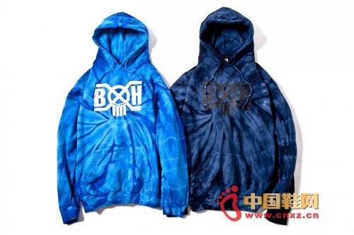 中國鞋網1月9日訊,日本時裝品牌 Bounty Hunter 近日發表了今個春夏系列的全新服飾,棒外外套,襯衫,衛衣和褲子可謂「固定班底」,而當中最能吸引人眼光的就是以上兩款連帽衛衣。設計師以扎染方法為布料進行染色,令布料上顯現出獨特的花紋圖案,而品牌的標志就印在衛衣的正中間,以提醒各位這是 Bounty Hunter 的出品。兩款衛衣的售價為 ¥14,490 日元,現已于品牌的官方代理商上架。