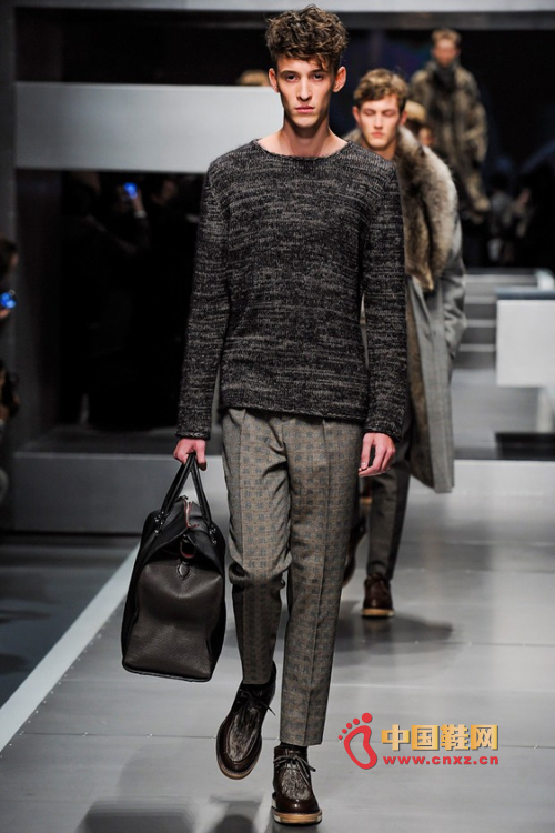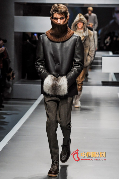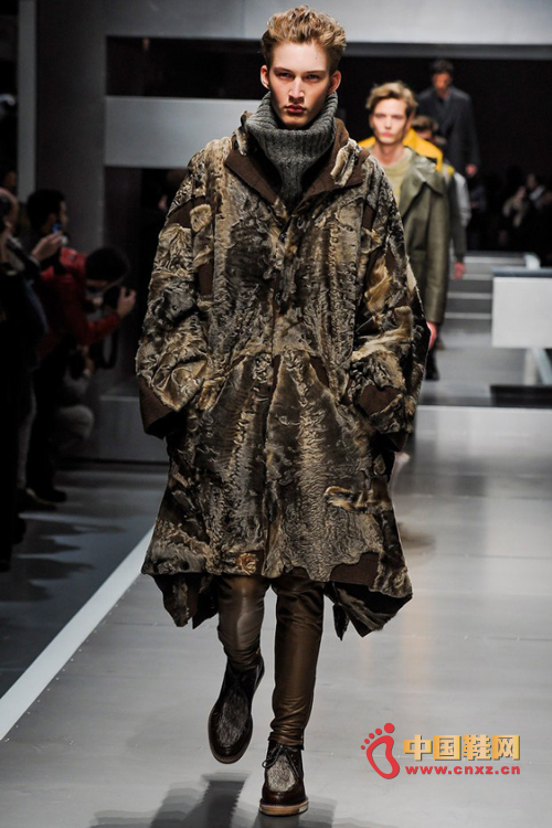 中國鞋網1月16日訊,由家族繼承人 Silvia Venturini Fendi 負責男裝設計的義大利奢華品牌 Fendi 于日前在米蘭男裝周中發布了 2013 秋冬系列。也許是因為全球氣候變暖,或者在最極端的天氣狀況中人類與自然的關系才能變得純粹,本系列設計師直接從北歐攝取靈感,通過厚實的針織衫、廓形的 Parka以及冰島漁民式的大衣營造出斯堪的納維亞半島的氛圍,亮面皮革、夸張皮草以及羊毛的運用配合大地色系的貫穿亦為該系列添加多幾分戶外的氣息;此外,剪裁工整的西裝、綢緞翻領禮服以及修身的夾克更是給這個充滿地域風情的系列融入了優雅的質感。