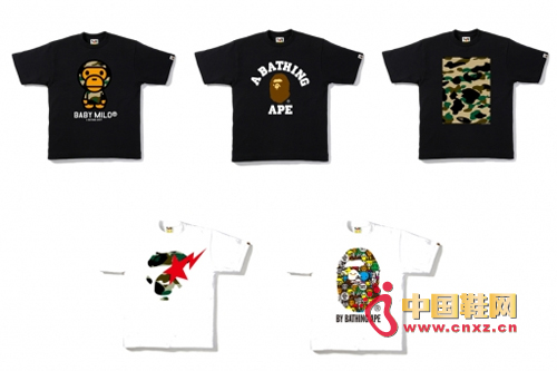 中國鞋網1月21日訊,在歐洲,各大時裝周開的不亦可乎,絕對是你方唱罷我登場,一派熱鬧的景象。作為美洲市場,BAPE NEW YORK STORE自然也不甘寂寞,火速推出了5款全新的2013春夏季T-SHIRT。值得一提的是,此次推出的5款T-SHIRT完全采用了BAPE多年以來的經典元素。軍綠色迷彩,碩大的猿人頭logo,可愛的MILO形象......每件T-SHIRTS毫不夸張的說,到能代表每個時代的BAPE特點。作為BAPE的死忠,絕對不可錯過。話說5件一起收了,也是一個不錯的選擇呢。