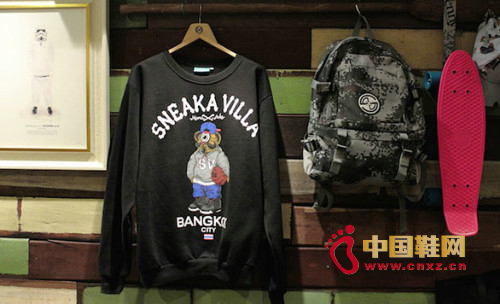 中國鞋網1月27日訊,近日,Mamafaka和泰國潮流店鋪Sneaka Villa聯名推出一款'Polo Bear' Sweater。Mamafaka畫了一只非常獨具街頭風味的泰迪小熊,不,應該是老熊?因為有著男人味的大胡子,反帶這CUP帽子,穿著一件灰色 Sneaka Villa縮寫的SV衛衣,還夾著一個籃球,喂,你經常打籃球還這么肥啊?最有型當然是那個Mamafaka風格大單眼了,一只街頭風格的外星熊?