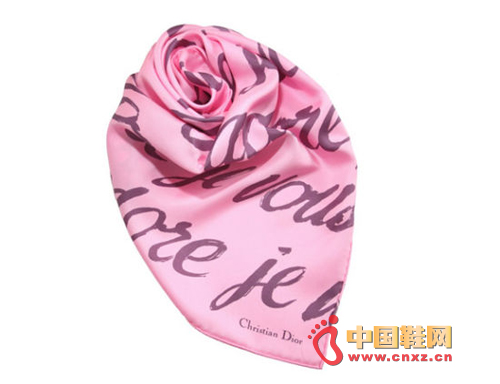 此外,滿布著法文"Je Vous Adore"(我喜歡你)標語印花的淺粉色絲巾,小巧實用的尺寸70cm x 70cm,不僅能巧妙妝點全身造型,亦能做為包款絲巾裝飾,以最直接的語言表達愛意(專賣店)。