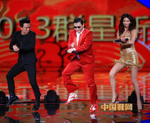 鳥叔PSY以經典的黑超造型亮相,穿上了一身中國紅的表演西服,相當喜慶。一出場,頓時贏得觀眾尖叫聲連連,紛紛大喊:“偶爸,撒拉嘿呦!”鳥叔在前一日發布會上,曾許諾會帶來前所未來的“瘋狂版”騎馬舞,他果真兌現了承諾,每一個動作都十分夸張、賣力,跳完后已是滿頭大汗。