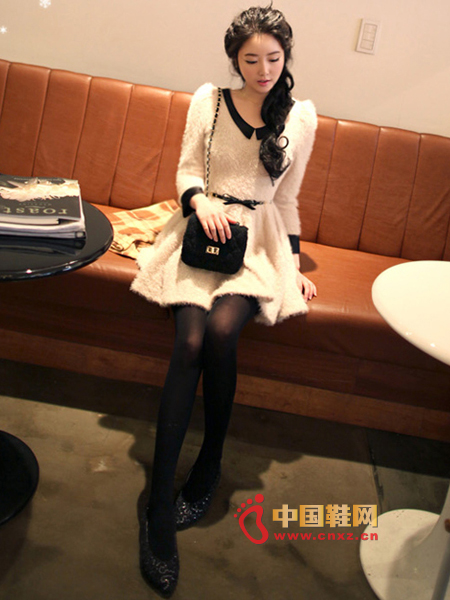 甜美款連身裙,毛呢的材質,時尚又有味道,袖口和領口的拼接,腰間的蝴蝶結設計,很有味道,渾身散發小清新的感覺。