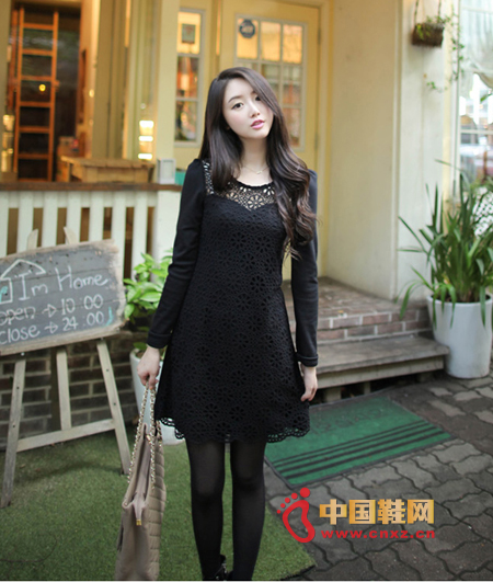 留空雕花連身裙,修身的剪裁,微微闊擺的設計,塑造了完美的腰身和拉長了腿部線條,鑲嵌的鏤空部分展現了些許性感味道。