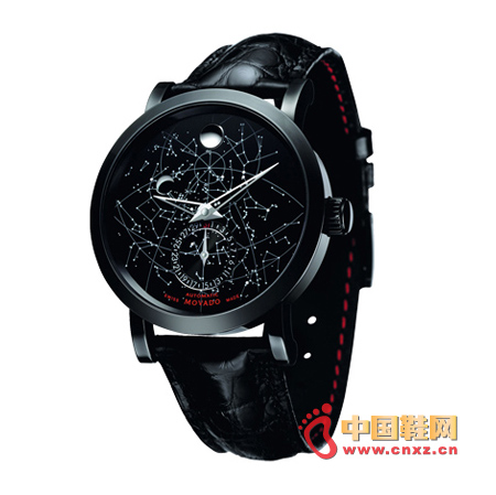 中國鞋網2月6日訊,不知道大家有無看過《星空》這部電影,當男主角背著女主角奔跑在夜晚,他們頭頂的星空是多么的壯觀美妙,令人沉醉。你有多久沒看過滿天星星了?MOVADO新表Red Label Skymap可以還你心愿,渾體暗黑表盤表帶代表黑夜,表盤卻有滿滿的星宿軌跡,配合SUPER LUMI-NOVA的效果特性下,大顆星體的圖案顯得更加閃爍。42mm不銹鋼表殼配合黑色PVD涂層技術處理,表盤6寸及10時位置分別設有日歷及月相顯示盤,透視於藍寶石(專賣店)透明底蓋的機芯,F在,你在都市,低頭,就可以看到星空。