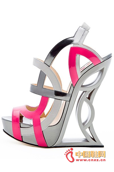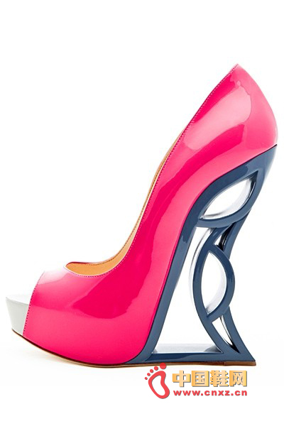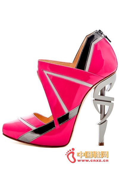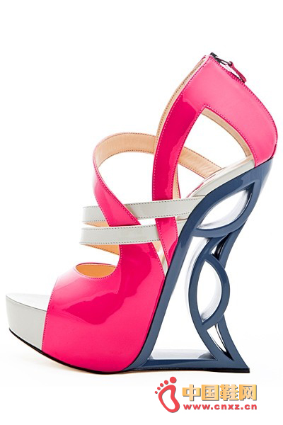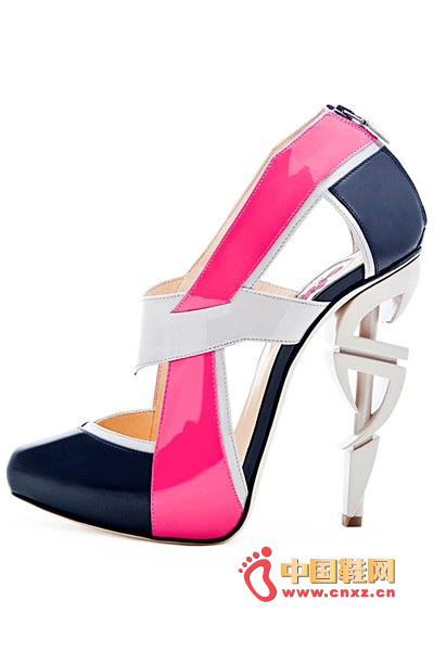 【中國鞋網(wǎng)-風(fēng)尚奢品】Vs2R 2013春夏系列美鞋完全展現(xiàn)了解構(gòu)主義的設(shè)計美學(xué)。設(shè)計師在鞋跟上巧花心思,將品牌的名稱幻化成各種幾何圖形融于其中,帶來頗具藝術(shù)感的作品。這一季,裸色、亮粉、深藍(lán)、米色和金屬銀的組合使用更讓這些鞋款一展夸張前衛(wèi)的視覺創(chuàng)意。