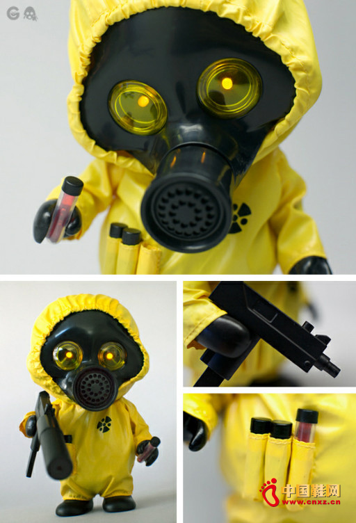 中國鞋網2月20日訊,近年,好的設計師玩具(撇除日本玩具)不多,除了KAWS其實還有這個。Project Squadt推出全新作品,GERM S003 [NUUK] 公仔。這次真像沙司時期的衛(wèi)生人員,全副消毒武裝!豐富(專賣店)的配件依然是賣點之一,特別版的LED 發(fā)光特效頭盔、連帽束口化學防護服、可拆卸消音器的sMAC 10 衝鋒槍、試管、以及經典與2.1版的可動手臂。全球限定200組,售價95元美金還包全球運費哦。