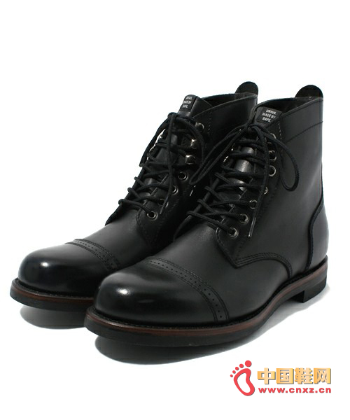 中國鞋網3月1日訊,URSUS,一個由NIGO和WTAPS西山徹建立出來的BAPE副線品牌一直以美式工作和軍事風格作為設計方向。當然,這次也不例外,新推出的皮革MILI TARY軍事皮靴依然散放出了濃重的軍事風格。