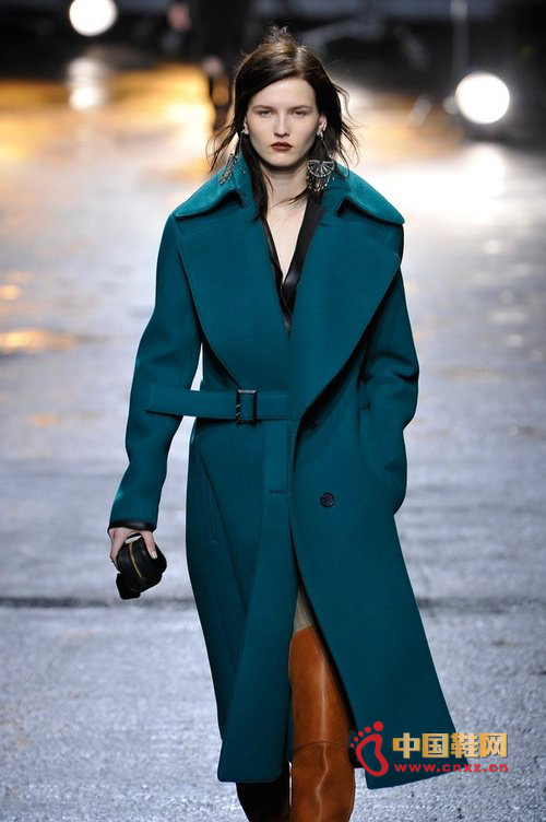 我們不止一次說過冷調的藍綠色系是2013年重要的色彩趨勢,關于這一點我們在紐約秀場上又得到了驗證。不同層次的藍色系中偏重于沉靜的海泡藍具有廣闊的商業前景,這一色彩可廣泛應用于各個領域,從成熟女性的連衣裙、外套到更為年輕市場上的運動裝、休閑裝的應用。這一色彩還非常適合與復古感的栗棕色系形成撞色效果。