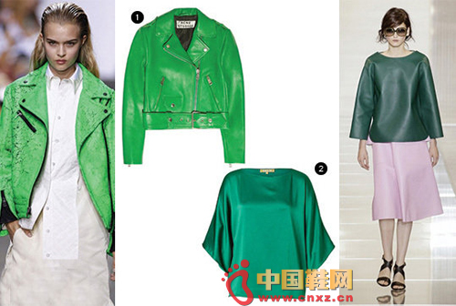 Acne(左圖模特)的帥氣硬朗和Marni的溫柔優(yōu)雅(右圖模特),你更愛哪一種?推薦單品:Acne綠色皮衣(圖1,1300英鎊,折合人民幣12063元),Michael Kors真絲上衣(圖2,525美元,折合人民幣3264元)。