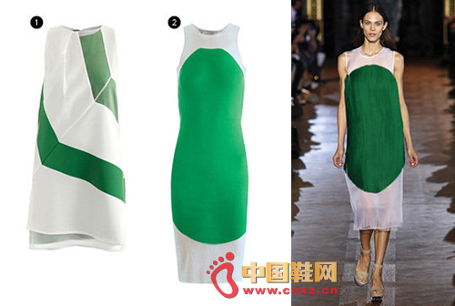 帶有新生和復(fù)蘇感覺的這抹翠綠,在早春這個季節(jié)最合適不過了。Stella McCartney秀場同款的這件綠白撞色長裙(圖2,977美元,折合人民幣6074元),撲面而來的清新脫俗,相信會讓無數(shù)優(yōu)雅女為之心動。而Sportmax的這款幾何圖案的連衣裙(圖1,814美元,折合人民幣5061元),似乎有著異曲同工之妙。