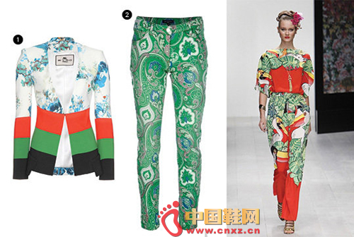 同樣活力四射的翠綠和橘黃碰撞在一起便是一股無人能及的熱情,從Issa T臺走來的這位模特讓我們看到了這股熱情。今年春夏,如果你夠個性,夠時髦,就試試這個組合吧!推薦給你Etro這條充滿民族風(fēng)情的翠綠印花褲(圖2,433美元,折合人民幣2692元),搭配同樣來自Etro的印花撞色西裝(圖1,1515歐元,折合人民幣12245元),成為街拍達(dá)人只在頃刻。