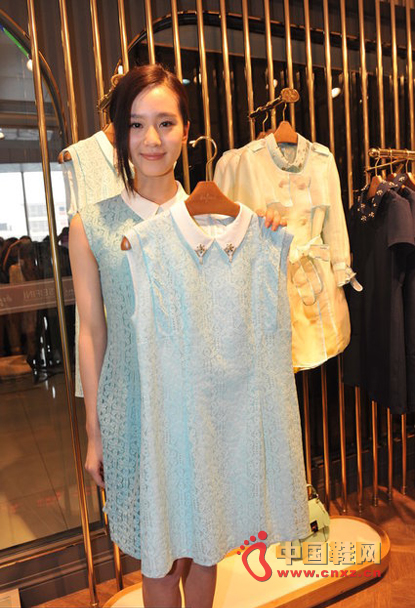 中國鞋網3月27日訊,正在熱拍電視劇《步步驚情》的劉詩詩一襲淺綠色連身裙搭高跟鞋現身為某服裝店開業擔任剪彩嘉賓。主辦方特意安排幾名黑衣大漢為劉詩詩保駕。